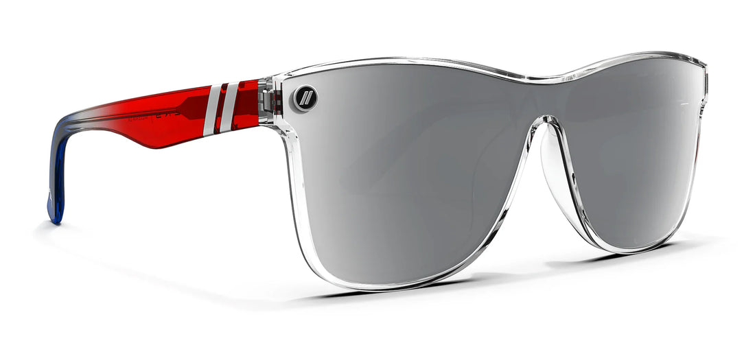 Show Your Stripes with 'American Icon.' These holiday-ready, limited-edition shades are down to party with patriotic colors and a polarised PureBlend™ Lens in our premium 'Millenia DX' style. A metal core in each arm enhances fit for all-day comfort. And as a salute to summer, our iconic Blenders stripes are joined by a collection-exclusive "24" logo, reminding you to live each day like it’s the weekend — off the clock and on the go! //