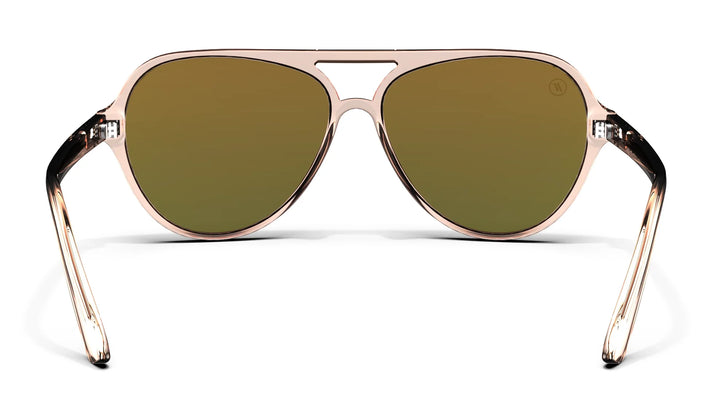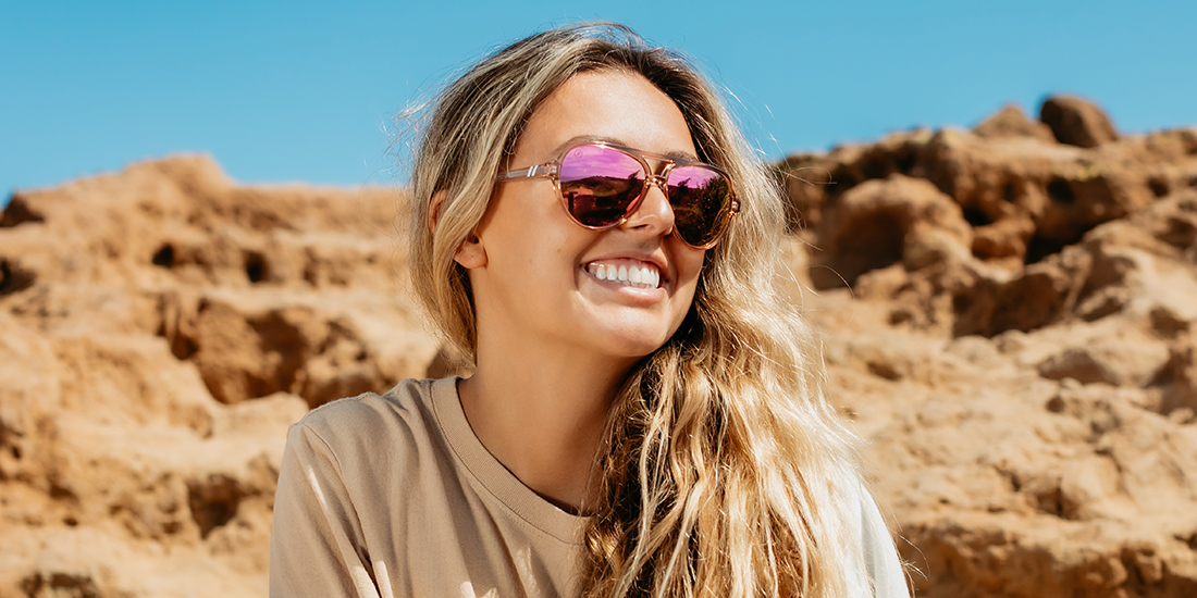 'Candy Cove' and its crush-worthy colorway are here to mix a little magic into your day. The appeal here is very, very real, thanks to a semi-transparent rose frame with a visible silver-plated metal core at the temples for extra glam. The polarised pink lens complements this aesthetic perfectly, and the top bar frame adds an extra dose of distinction to these stellar sunnies. //