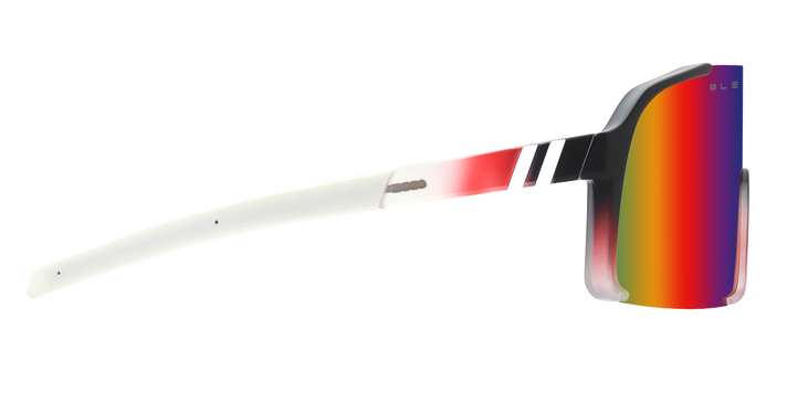 Get up and move with ‘Dance Kingdom.’ Part of our sports-centric ‘Exposé’ collection, we’ve gone all out so you can go all out. These wraparound sunglasses boast a frame that fades from solid black to crystal red to crystal clear. A matching PureBlend rainbow lens provides peak performance and miles of style. Available in polarised or non-polarised. //