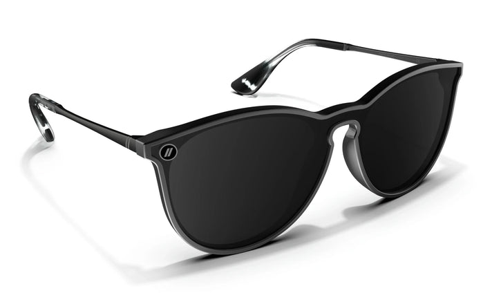 Legend Bound’ is just epic. These metallic black sunglasses in our ‘North Park X2’ collection boast a satin frame finish and black-striped crystal clear temple tips for an arresting visual style. The masked smoke lens smoothly complements the aesthetic and features our PureBlend polycarbonate to add a whole new level of clarity to your day. //