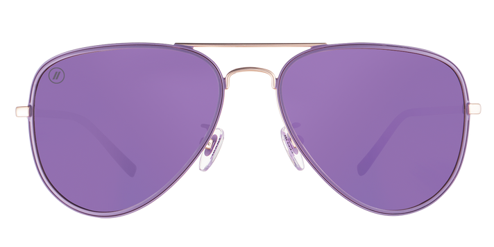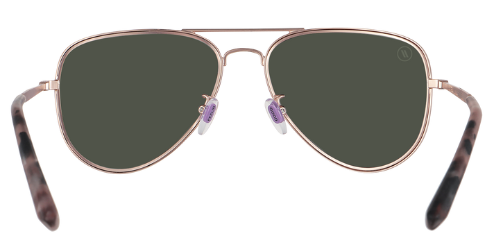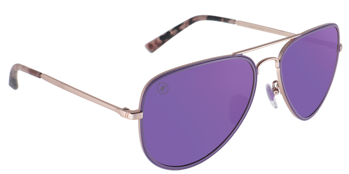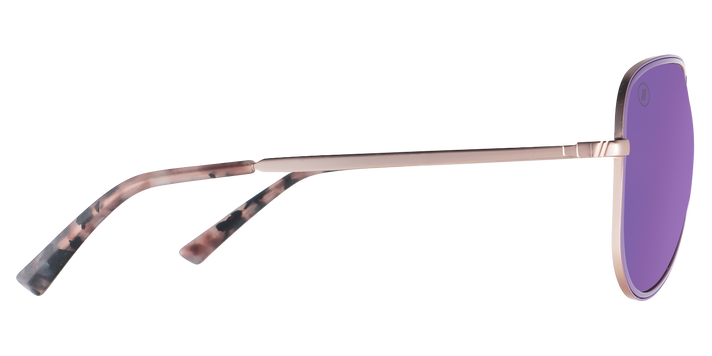 Classic teardrop style meets contemporary colorway with 'Lilac Lacy.' These aviator sunglasses wow with a polarised lavendar lens and rose-gold tone at the temples, then drop jaws with a contrasting tortoise pattern at the ear tips. There’s durability to go with all that razzle-dazzle, too—the frame and temples are crafted from stainless steel and high nickel silver for a long-lasting fit. //