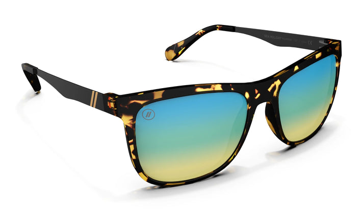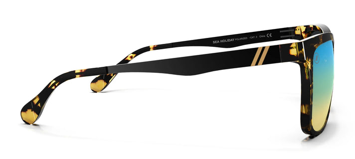 Show out with 'Sea Holiday!' We’ve taken a glossy frame and durable metal temples—hallmarks of our 'Charter' collection—and turned the heat level up to "extra spicy." A yellow-and-black tortoise pattern is complemented by aqua champagne gradient lenses for a festive fit destined to make a splash. //