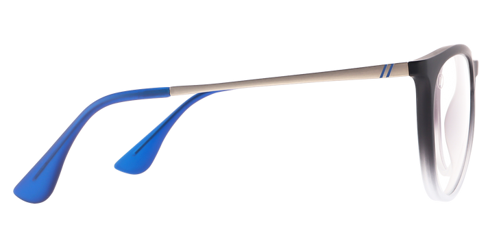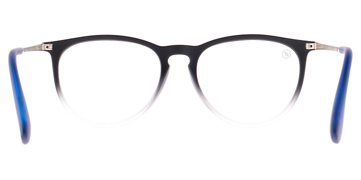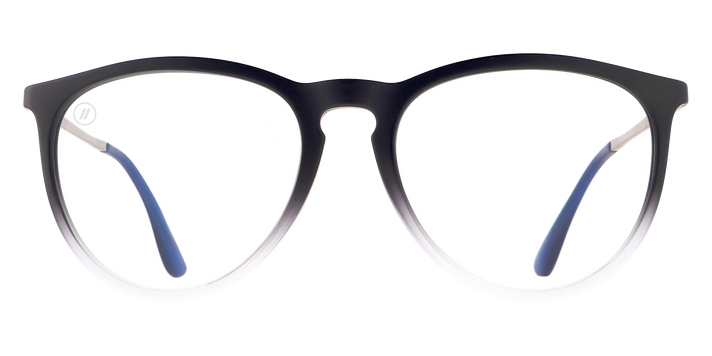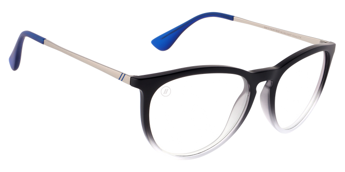 The frame you love… the protection you need! ‘Better Biz’ merges the stylish sophistication of our ‘North Park’ collection with Blenders Blue Light technology. These round glasses serve up durable polycarbonate lenses with dual anti-reflection coatings that minimize glare and filter out the harmful emissions from your electronic devices. The frame of these blue light blockers fades fantastically from crystal black to crystal clear, and the temple tips add a pop of electric blue for a satisfying contrast. //