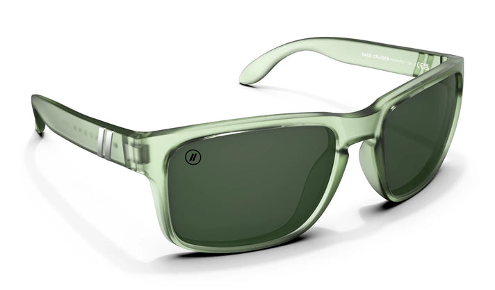 Live Forward with 'Sage Cruiser.' Equal parts durable and versatile, these wraparound sunglasses go great with your day, whether journeying to a national park or jaunting to the city plaza. The soft green tonality of the frame and lenses strikes an infinitely appealing casual-cool balance. Available with your choice of polarised or non-polarised PureBlend Lens. //
