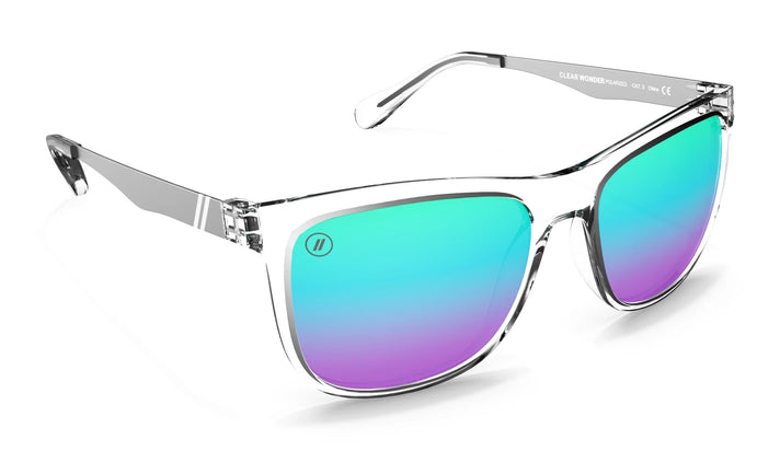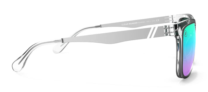 'Clear Wonder' sports an awe-worthy aesthetic: Crystal clear frame, rainbow polarised lens, and metal temples in a matte finish. The mixed materials and contrasting finishes somehow make these shades both ethereal and earthly—a stylish surprise sure to draw envious looks. //