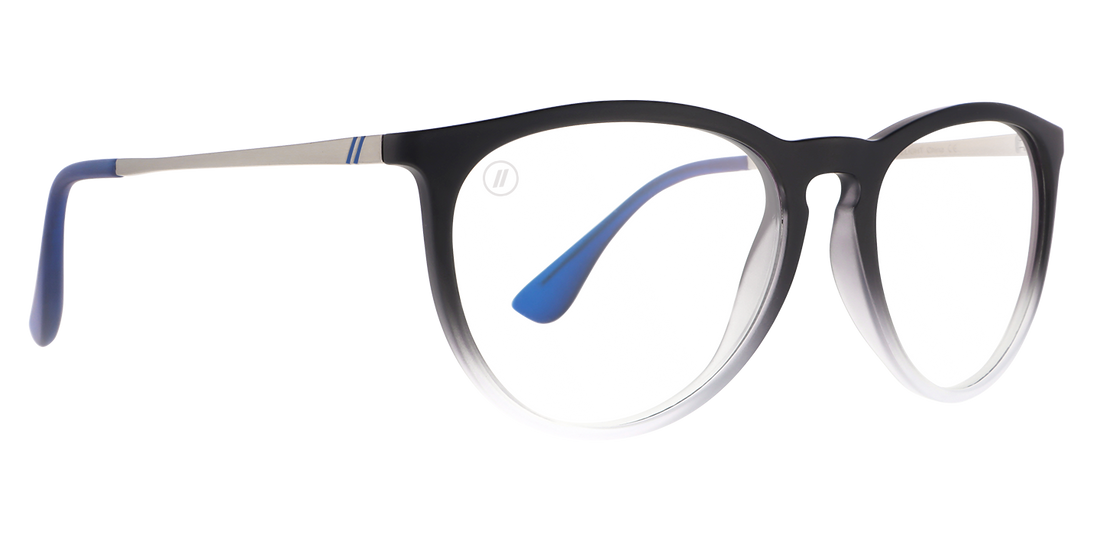 The frame you love… the protection you need! ‘Better Biz’ merges the stylish sophistication of our ‘North Park’ collection with Blenders Blue Light technology. These round glasses serve up durable polycarbonate lenses with dual anti-reflection coatings that minimize glare and filter out the harmful emissions from your electronic devices. The frame of these blue light blockers fades fantastically from crystal black to crystal clear, and the temple tips add a pop of electric blue for a satisfying contrast. //