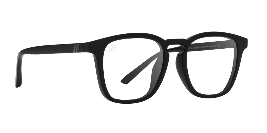 ‘Soul Singer’ keeps style and substance in harmony. These blue light blockers shut out harmful emissions from all your digital devices—and they look damn good doing it. The solid black colorway of these square glasses goes with any fit, and the matte coating grips well and feels great in your hands. Wear with supreme confidence! ///p>