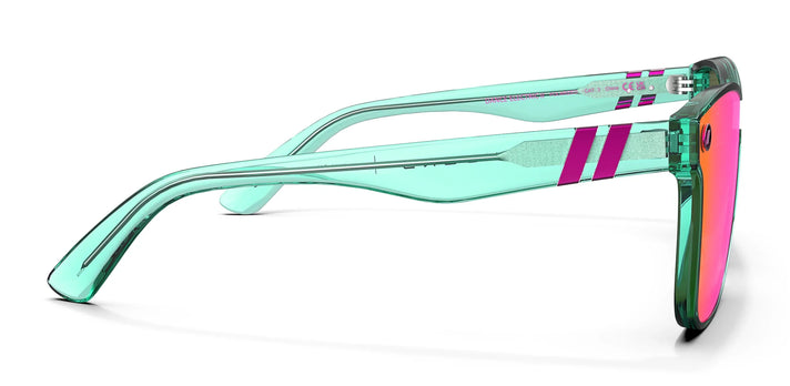 'DX' means deluxe, and with 'Dance Electric II,' you feel the quality the moment you put them on. They’re even more durable and comfortable than our 'Millenia X2' style, with a stronger frame and a new metal core for enhanced adjustability. They're more scratch-resistant, too, thanks to our premium, polarized PureBlend™ Lens. It all makes for the best-feeling, best-fitting 'Millenia' shades ever, in a spicy pink-and-teal aesthetic.