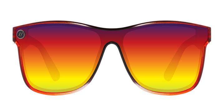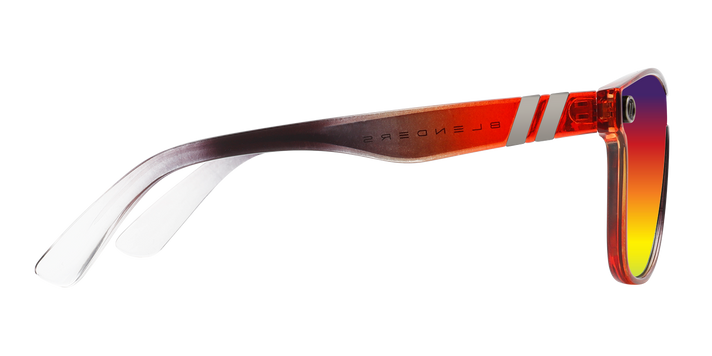 There’s no better way to get fired up and in Forward Motion than with 'Phoenix Fire.' These single lens sunglasses sport a sunset rainbow lens for jaw-dropping effect. The multi-fade frame and temples are a revelation, flowing from red to black to crystal clear at the temple tips. And because Blendz loves ya, we even tossed in polarised power! //