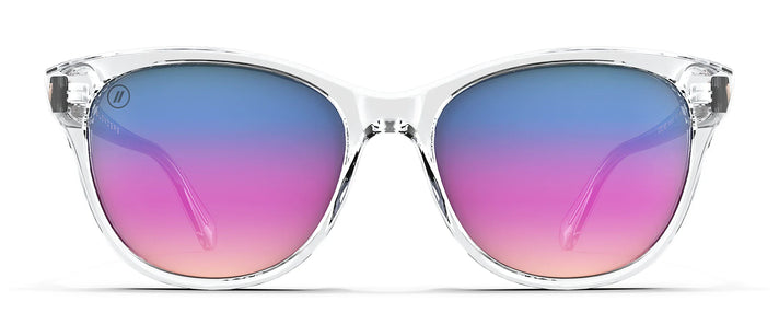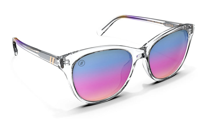 Live Forward (and fashionably!) with ‘Cool Iris.’ These cat-eye shades are best described as “glam wild”—the crystal clear frame, lavender rainbow lens, and colorful temple fade are a full-on embrace of uninhibited design. And with a comfortable, lightweight fit, ‘Cool Iris’ will always have you ready for the moment. //