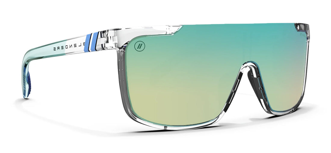‘Aloha West’ is a sublime representation of form and function. Our premium PureBlend Lens — offering our finest optical clarity — is present in a stunning aqua-champagne color. This elevated design is further enhanced by the multi-functional, removable side shields. Plus, the crystal clear & blue temples offer rubberized tips for added adjustability. ‘Aloha West’ has you covered from concert stages to canyon trails. //