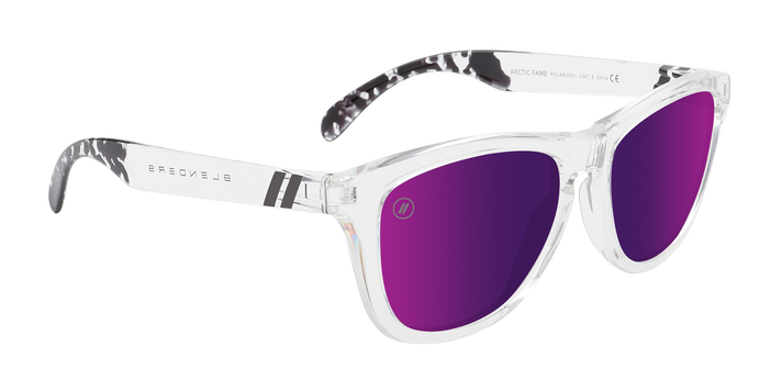 Why fly under the radar when you can live a life of 'Arctic Fame?' These crystal clear sunglasses crush the game with an ice cold colorway and contrasting tortoise temple tips. The polarised purple lens offers a contrasting pop of color for an elevated aesthetic. Lightweight and durable, they’re easy to wear and easy to love. //