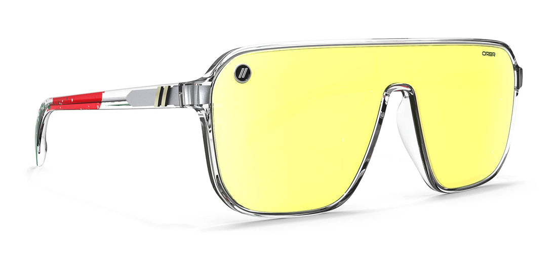 The Oracle Red Bull Racing Collection 'Toro Rojo' shades are a limited-edition tribute to the speed, style, and tradition of the Mexico City Grand Prix. We’ve splashed the crystal-clear temples with red and green in a proud nod to the Mexican flag and detailed each tip with the silhouette of the famed El Ángel de la Independencia monument. Our polarized, scratch-resistant PureBlend™ Lens — present in shimmering gold — takes the checkered flag. //