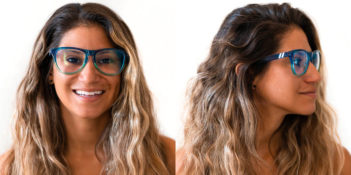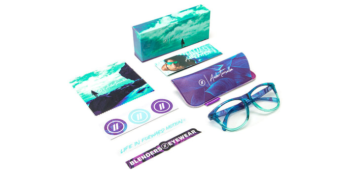 Break free from the harmful effects of prolonged screen time with the Amber Torrealba ‘Blenders Blue Light’ glasses. These specs help you win the day by reducing eye strain, headaches, and fatigue associated with digital displays, all without sacrificing style. The multi-colored floral pattern at the sides and top front is dynamically contrasted by a semi-transparent teal lower frame, and the lenses are crystal clear without the regrettable yellow tint seen in some competing blue light glasses. Put simply, these signature specs are here to make great style a lifestyle. //