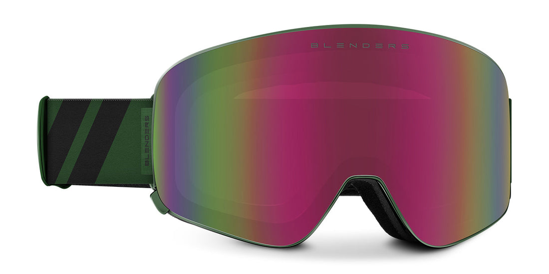 Trailblazers and hell raisers, take note: ‘Sage Canyon’ has all the looks and performance needed for a really, really good time on the slopes. These green snow goggles go all-in with a spectacular rainbow purple lens in a mirror finish. An OTG (over-the-glass) design with scratch- and smudge-resistant coatings ensures a clear view of the mountain on every run. Plus, our Rapid Magnetic Interchangeable Lens System enables quick lens swapping. //