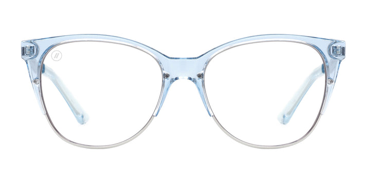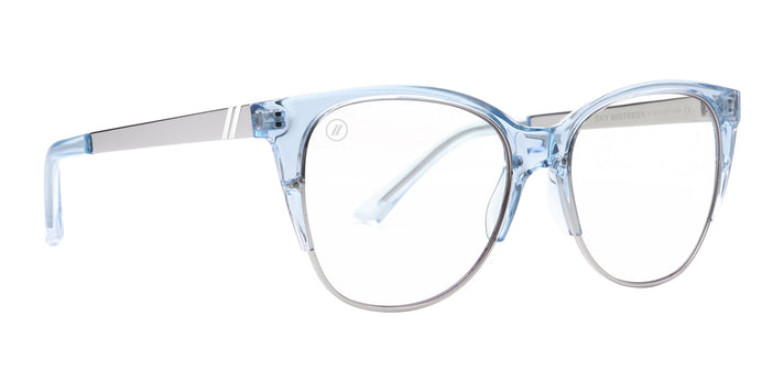 “Business casual” gets a whole new meaning with ‘Sky Mistress.’ There’s a cool, self-assured aesthetic here. The Cat Eye shape sizzles and the contrasting periwinkle coloring and silver-plated metal finishing at the temples and front frame bring wonder to your working hours. Still, these are specs styled to get sh** done, and they boast blue-light-blocking power for stopping headaches, preventing blurry vision, and promoting better sleep. It’s the best of both, here now. //