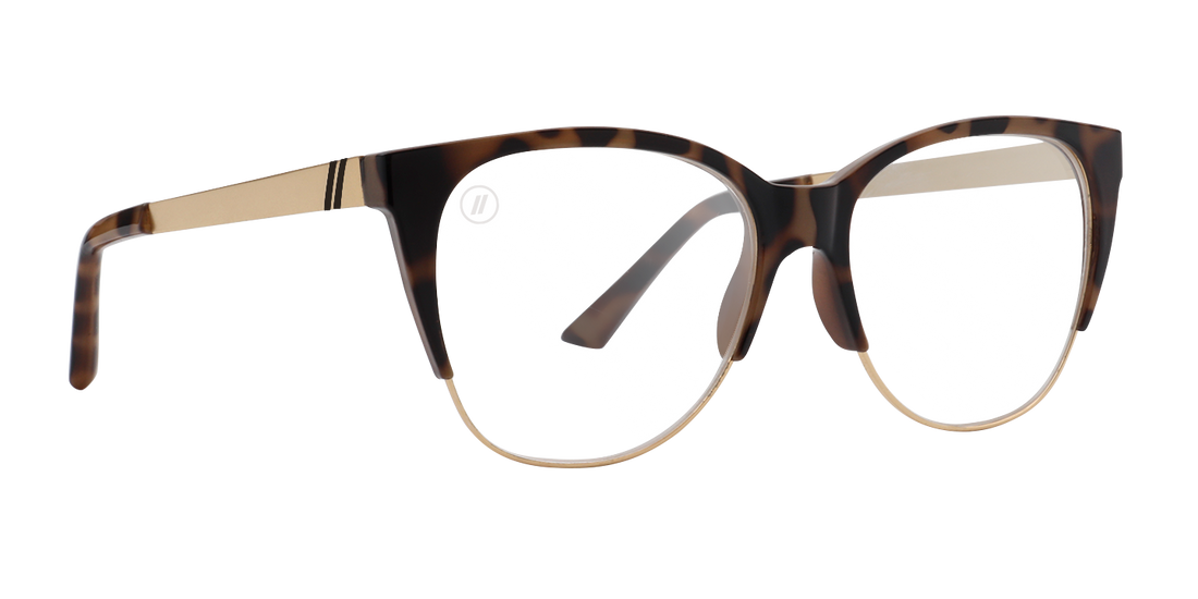 ‘Country Daisy’ takes the red-carpet-worthy glam of our ‘Starlet’ collection and brings it to the world of blue light blockers. These cat eye glasses dazzle with a half-and-half treatment of multi-colored tortoise and gold-toned metal for an inspired mixed materials design. And thanks to the fatigue-fighting blue light filter, this is definitely the co-worker you’ve always dreamed of. //