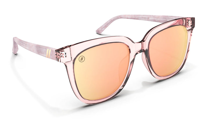 Just like you, this style knows its worth. 'Gemstone Gal' is meant for big days out with besties, sunny afternoons, and sizzling evenings—nothing else will do. So if you call the glam life your own, these glossy, crystal peach sunnies are the perfect companion. The champagne polarised lenses reduce glare, while the peach & white tortoise temples induce stares. These make a statement—and so will you. //
