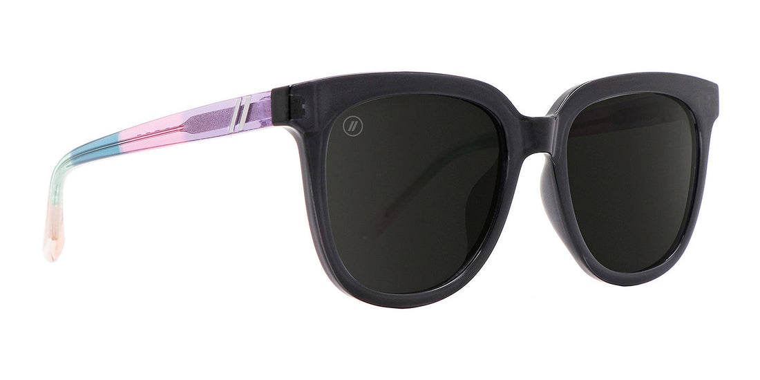 ‘Rose Fusion’ puts it all together. These sunglasses unite a gloss-black frame with color-blocked temples for a design that’s both versatile and captivating. Bright bursts of lavender, rose, teal, and turquoise in high-quality handmade acetate are joined by the superior scratch resistance of our polarised PureBlend™ Lens. It’s a colorful, confident aesthetic for living your best life. //